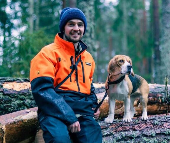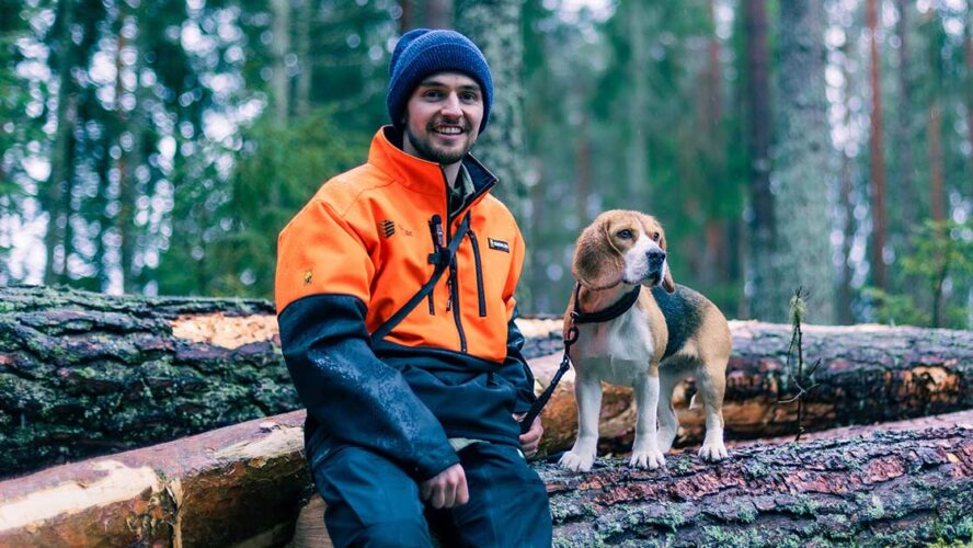 På fritiden jakter Gudmund på hare, hjort og rådyr sammen med beaglen, Ella – blant annet på terreng hos arbeidsgiveren.