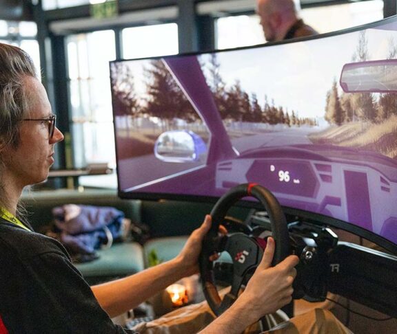 – Utfordringen har vært å gjøre simulatoren så realistisk som mulig, slik at folk faktisk får fornemmelsen av å sitte i en bil, ikke at de spiller et arkadespill. Foreløpig er vi i en tidlig fase, så vi jobber fortsatt med å få inn flere realistiske hendelser, som for eksempel vinter og glattkjøring.